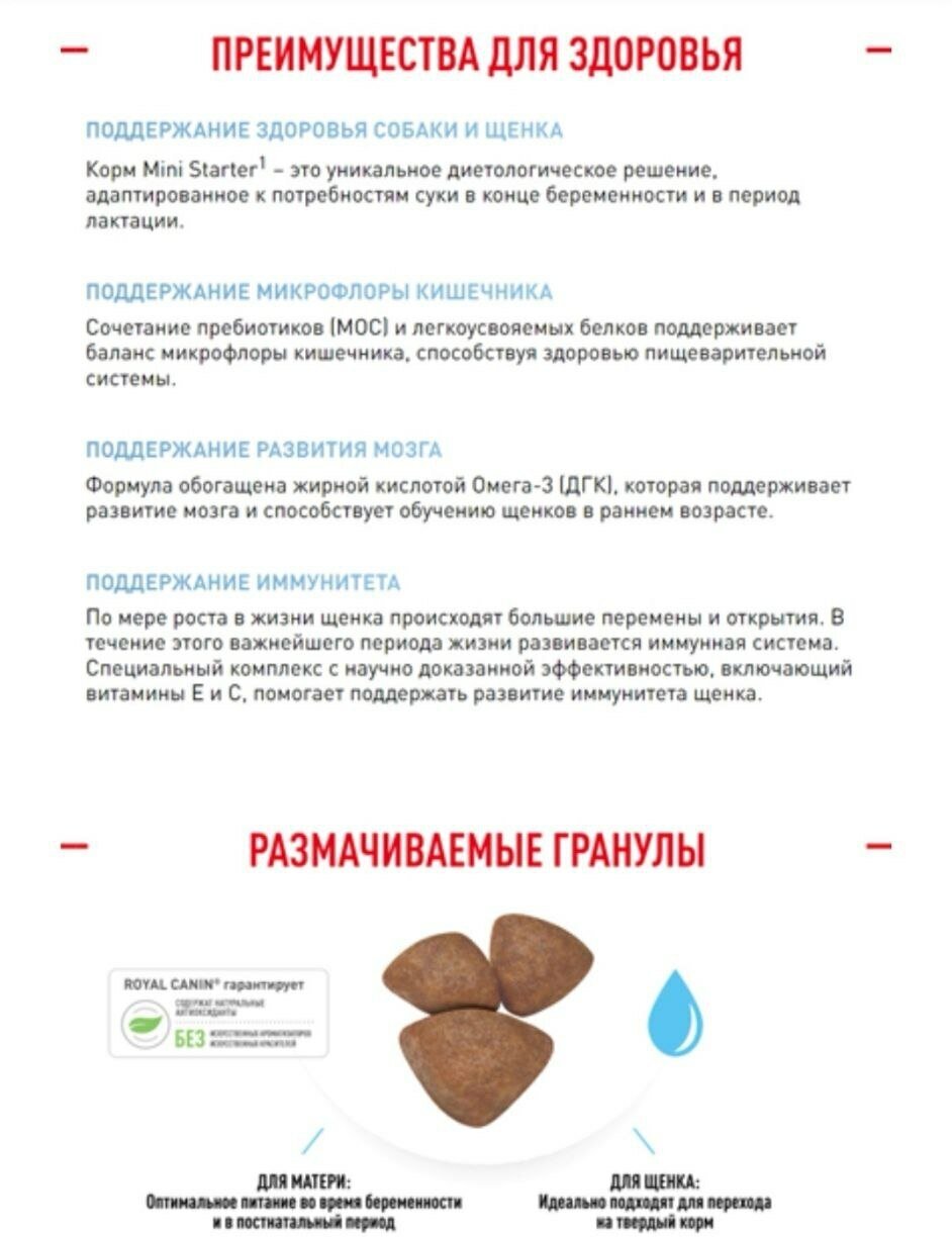 ROYAL CANIN MINI STARTER для щенков маленьких пород до 2 месяцев, беременных и кормящих сук (3 + 3 кг)