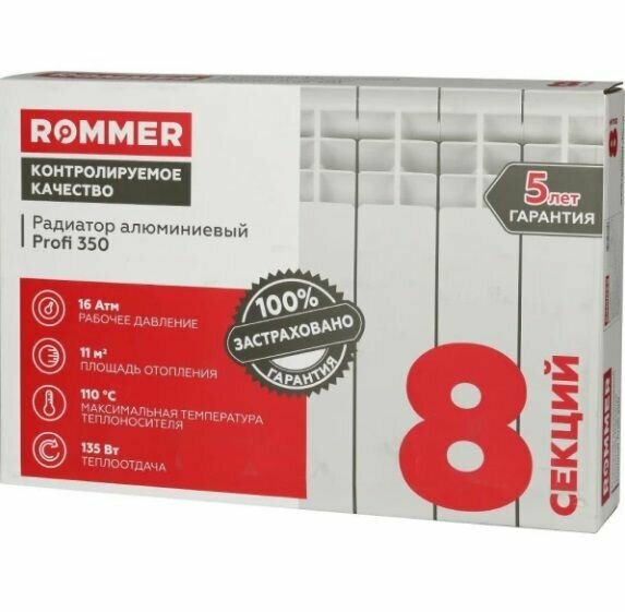 Profi 350 (AL350-80-80-080) 8 секций радиатор алюминиевый (RAL9016) ROMMER RAL-1210-035008