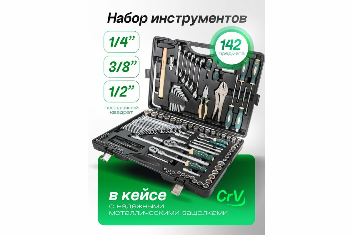 Набор инструментов Rock Force RF-41421-5 1/2", 1/4", 3/8"DR с 6-гранными головками, 142 предмета
