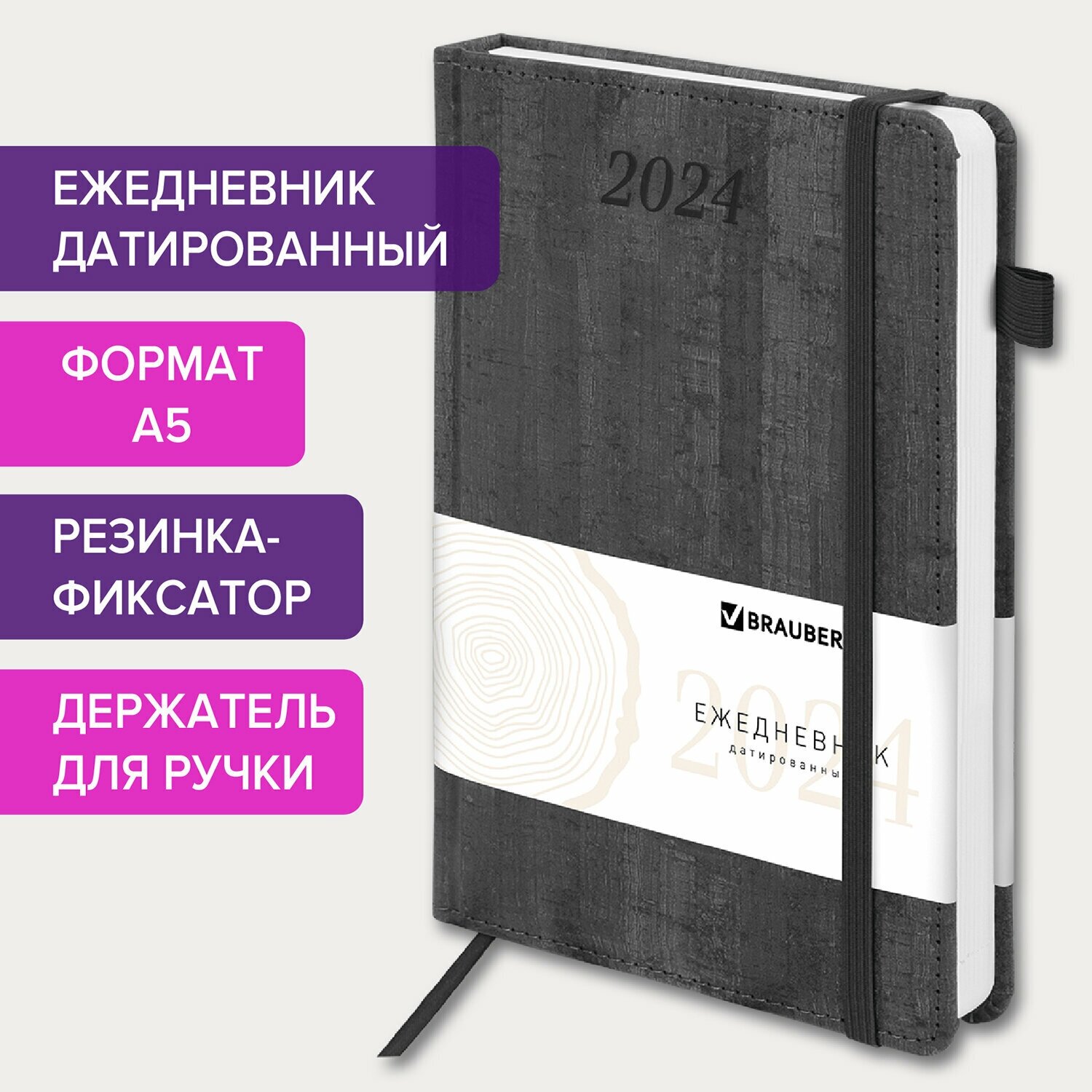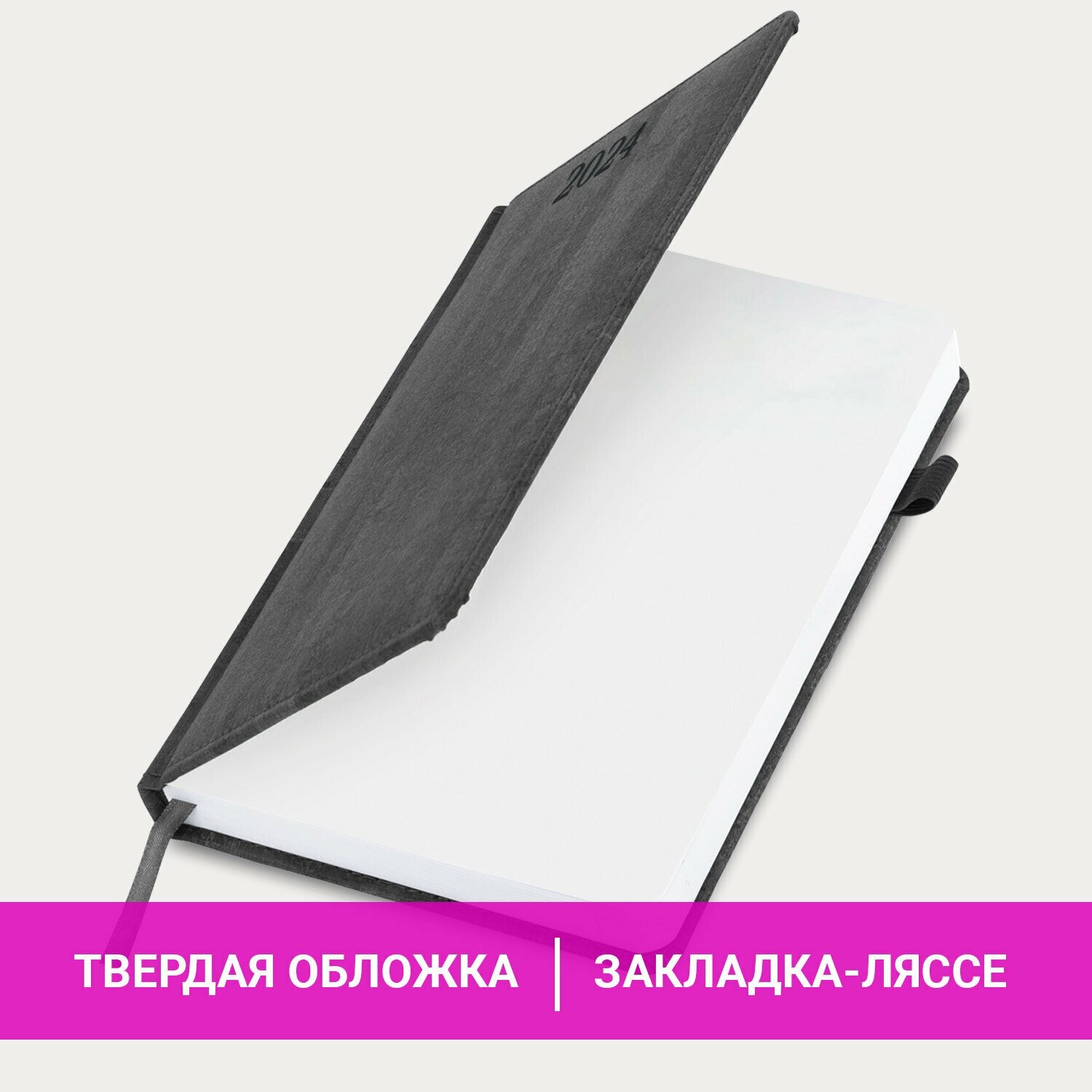 Mood Ежедневник датированный 2024 А5 138x213 мм BRAUBERG "Wood", под кожу, держатель для ручки, серый, 114901 ежедневники в Обь