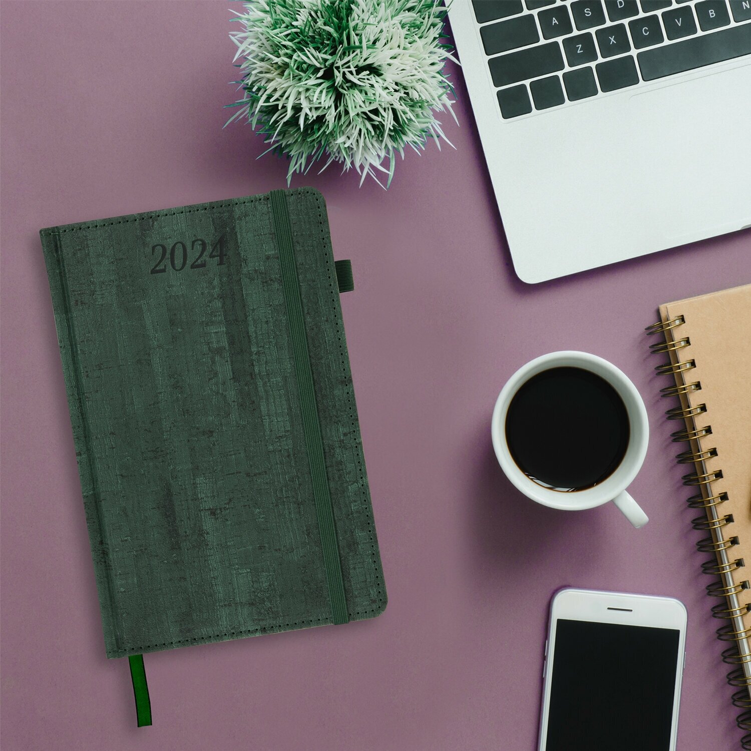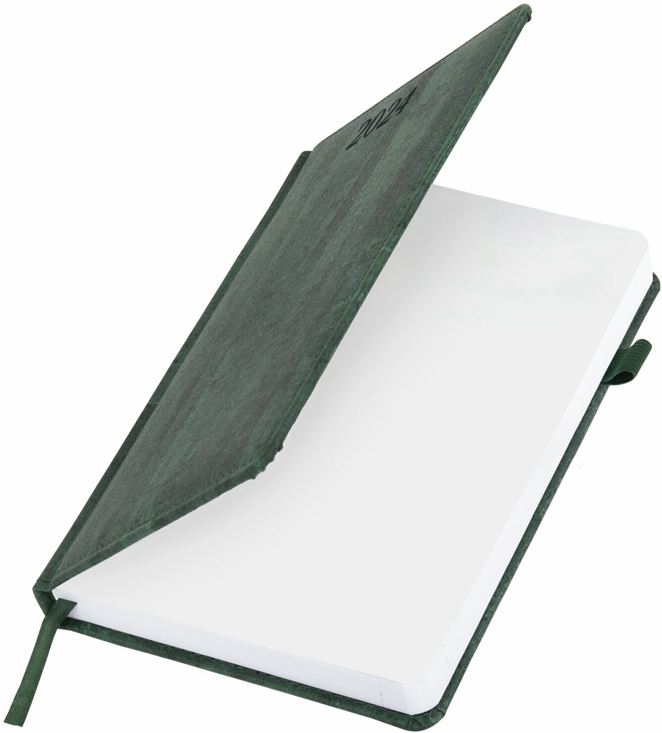 Ежедневник датированный 2024 А5 138x213 мм BRAUBERG "Wood", под кожу, держатель для ручки, зеленый, 114902