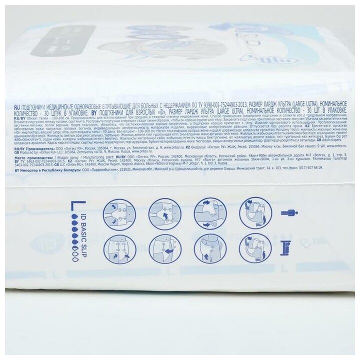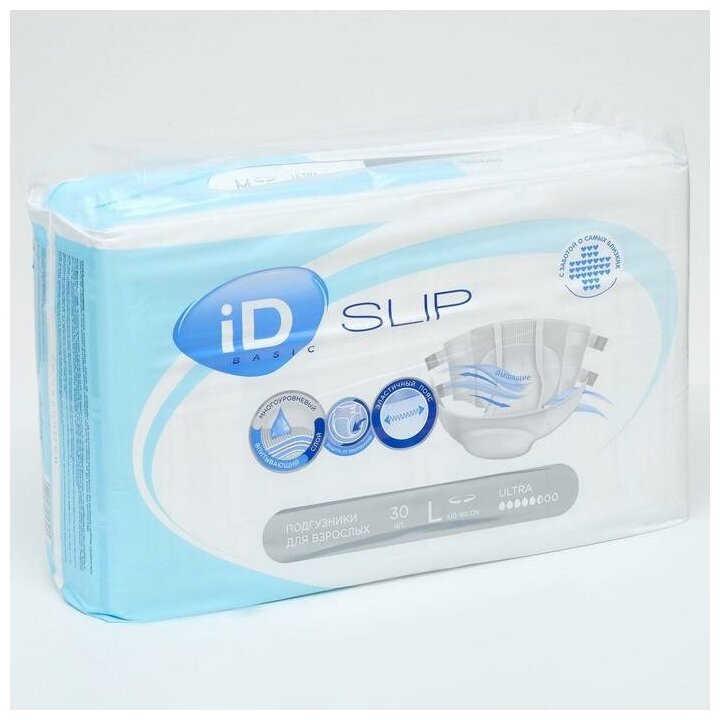Подгузники для взрослых iD SLIP, размер L, 30 шт, обхват талии 100-160 см, для тяжелой степени недержания