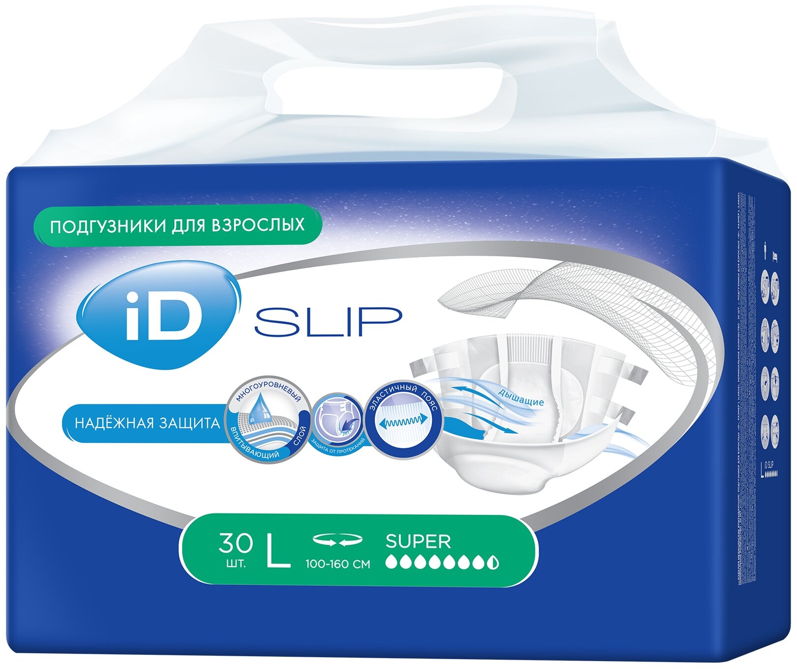 Подгузники для взрослых iD SLIP, размер L, 30 шт, обхват талии 100-160 см, для тяжелой степени недержания