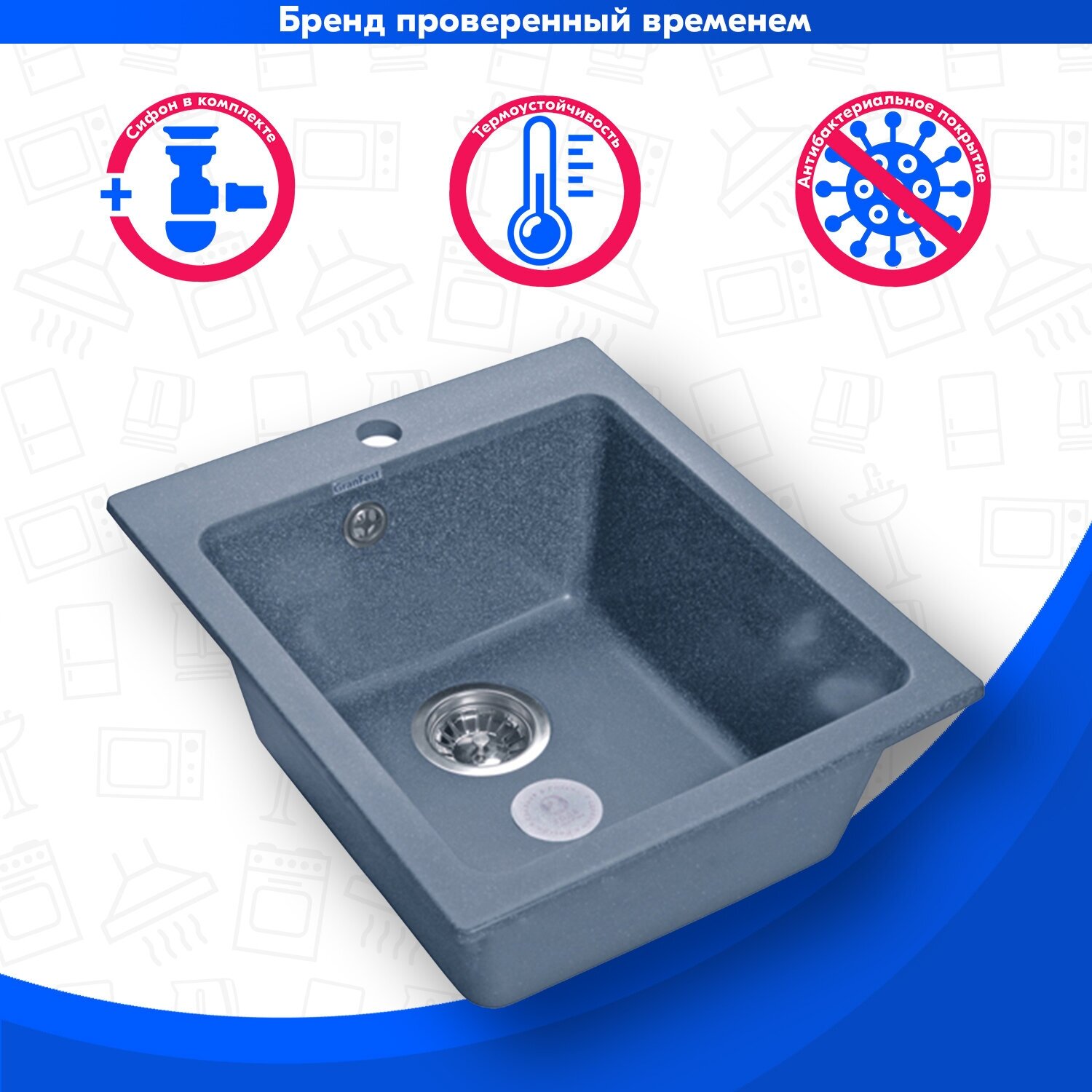 Мойка кухонная врезная, GranFest, Urban, кварцевый песок, 440х490 мм, одна чаша, темно-серая, GF-UR-644
