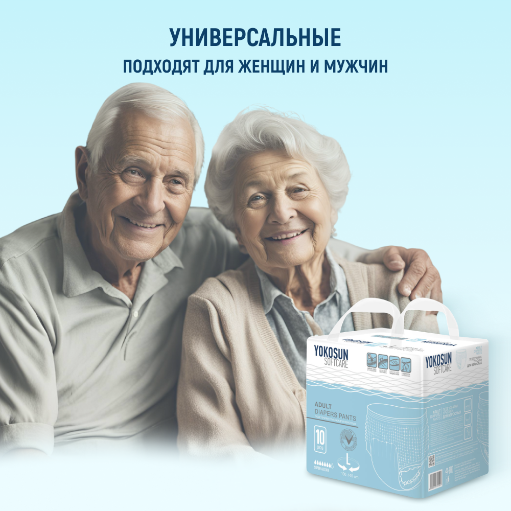 Подгузники-трусики для взрослых YokoSun, размер XL, 10 шт., упак