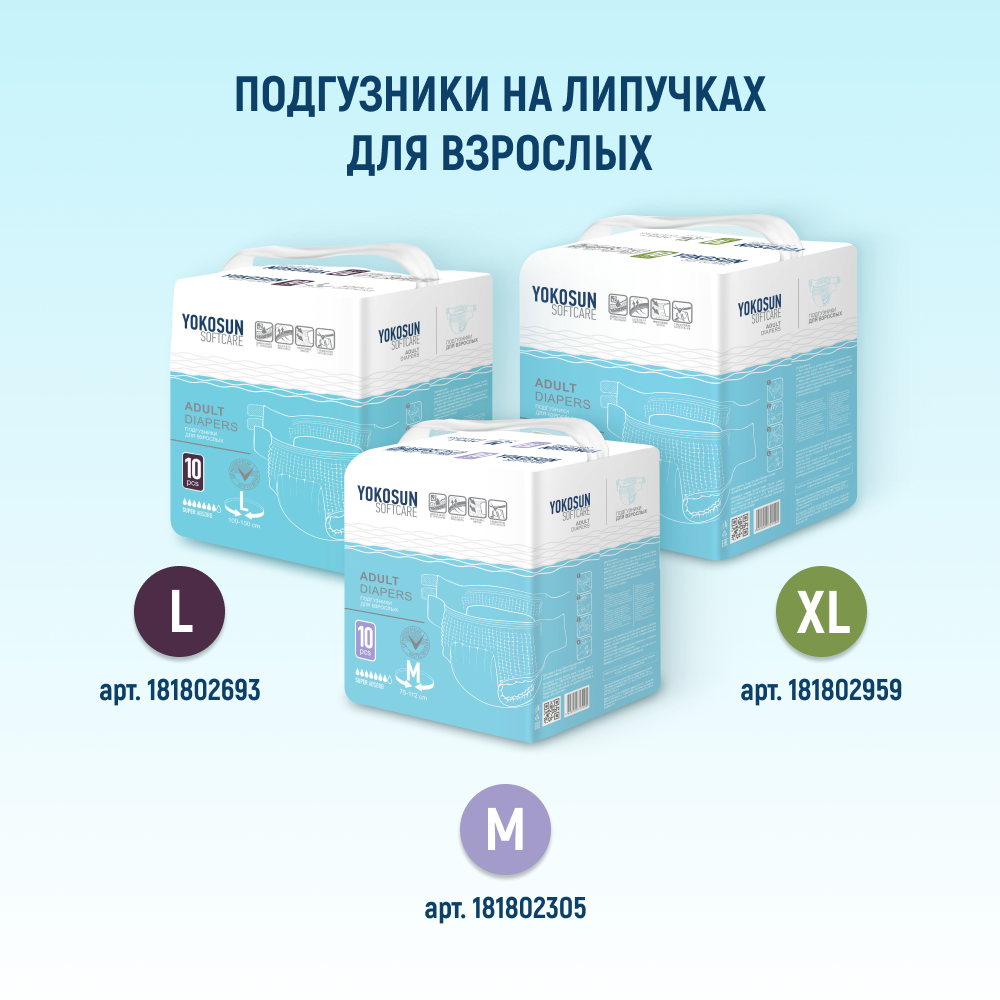 Подгузники- трусики для взрослых YokoSun, 10 шт.