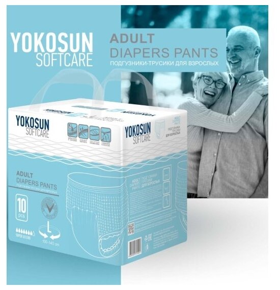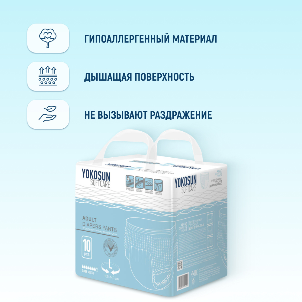 Подгузники-трусики для взрослых YokoSun, размер L, 10 шт., упак