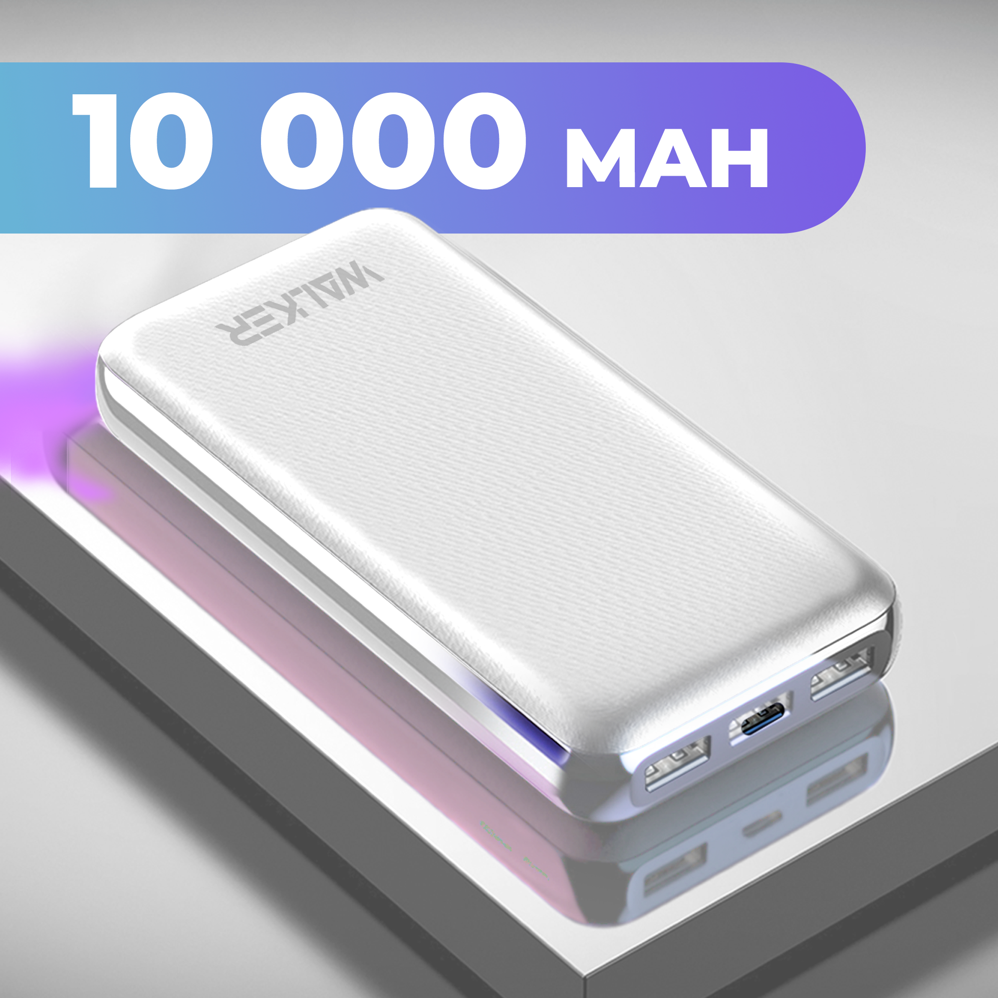 Повербанк 10000 mAh, WALKER, WB-410, 2.4 А, белый // powerbank, пауэр банк, power bank, павербанк, повербанк xiaomi, повербанк для айфона