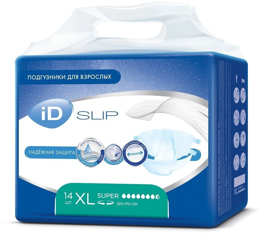 Подгузники для взрослых ID SLIP SUPER XL, 14 штук