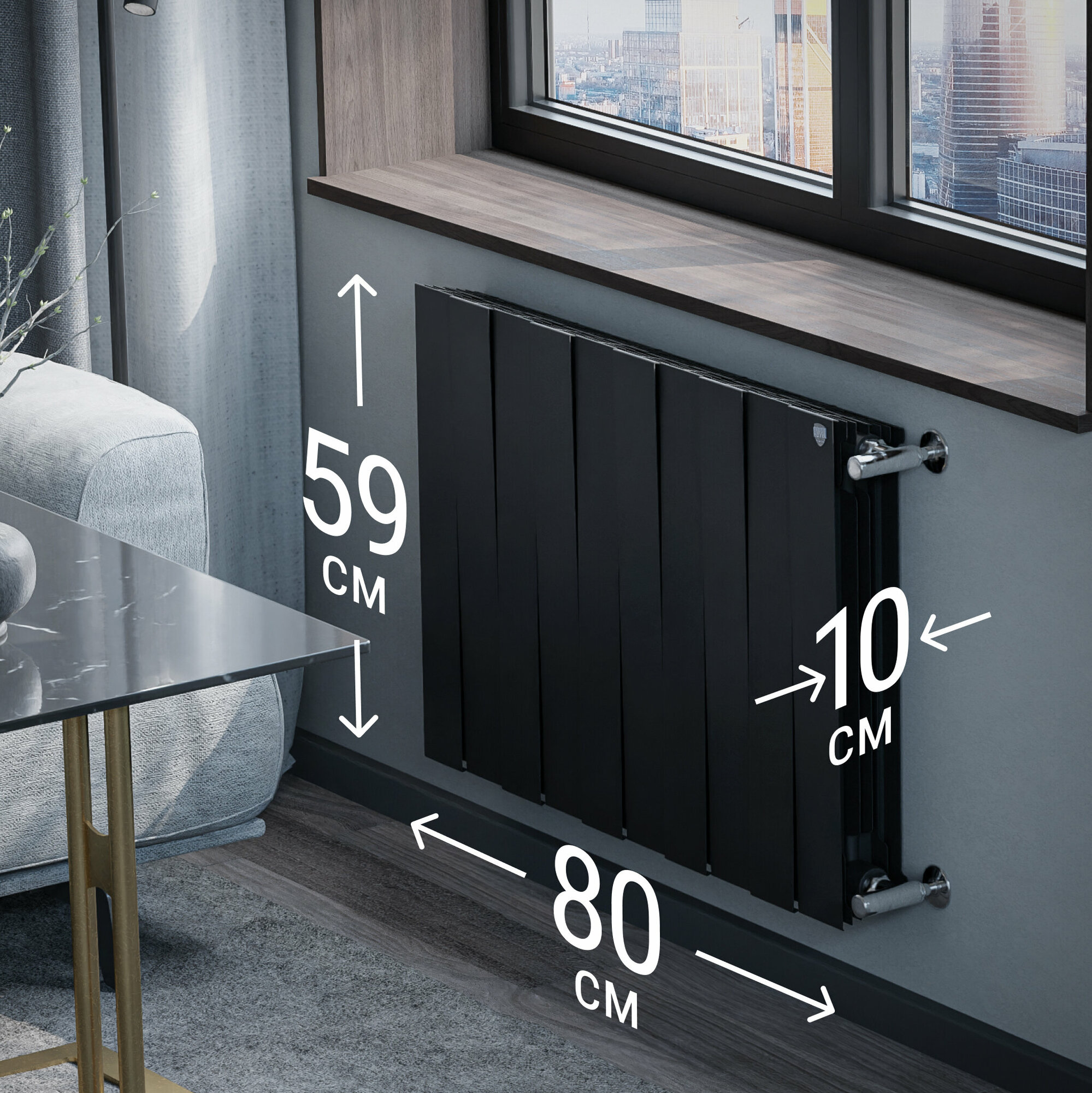 Радиатор биметаллический Royal Thermo Piano Forte 500 мм 10 секций 1" боковое подключение 591х800 мм черный