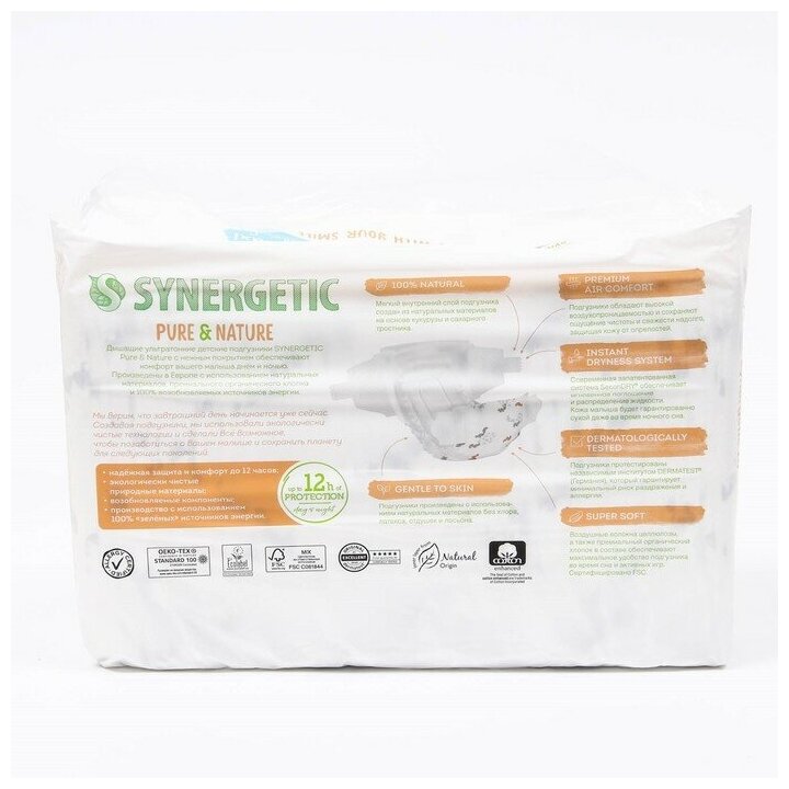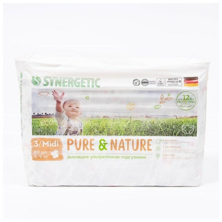 Подгузники SYNERGETIC PURE&NATURE Ультратонкие, дышащие, размер 3 MIDI, (4-9кг) 49шт
