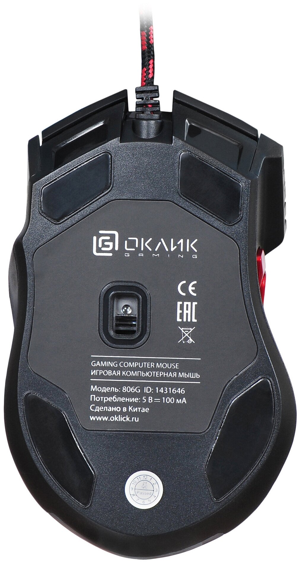 Мышь Oklick 806G, игровая, оптическая, проводная, USB, черный и красный [1431646]
