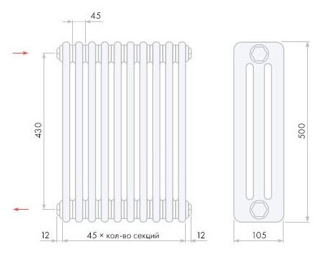 Радиатор секционный Arbonia 3050/12 боковое подключение (без накладок) № 12 3/4" RAL 9016 Белый
