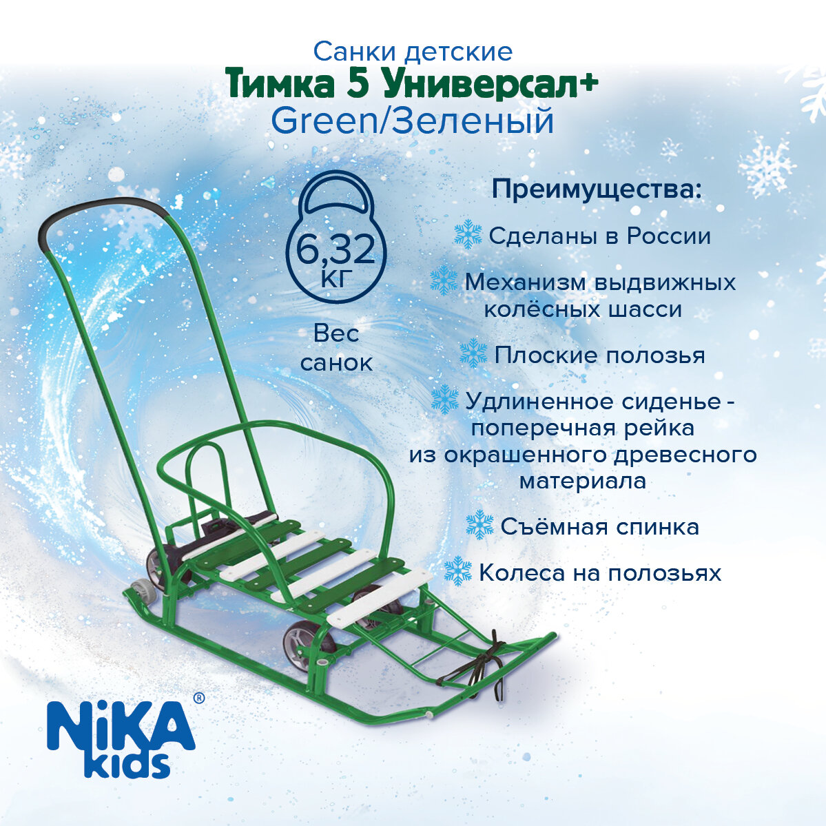 Санки детские Nika "Тимка 5 универсал", съемная ручка, выдвижные колеса, зеленый