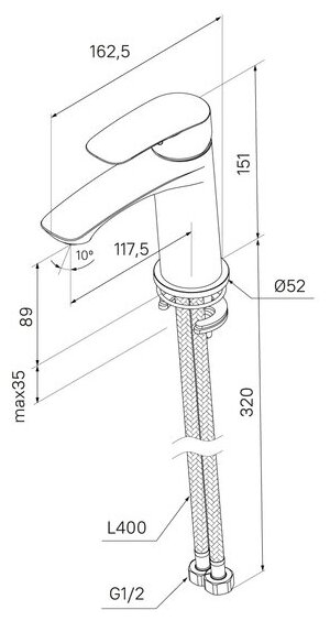 Смеситель для умывальника 35к Milardo RORWT00M01 "Rora" литой, п/шпильку, белый матовый