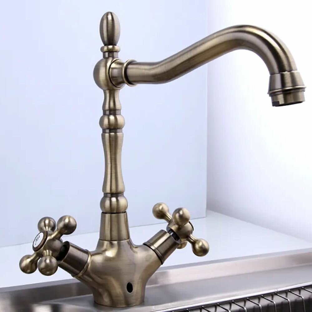 Смеситель HB19 д/кухни 2-ручк, кер к/б, бронза, Haiba(Китай), арт HB4419-4