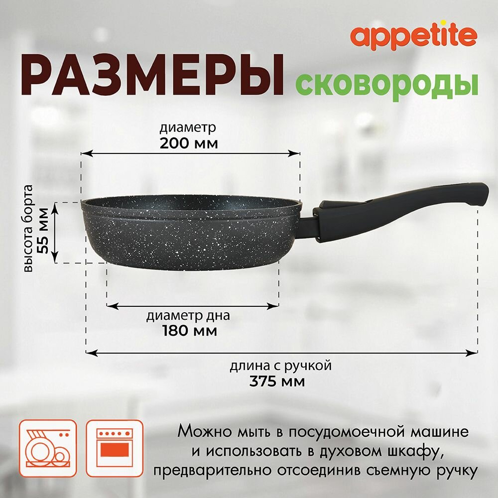 Сковорода Appetite Black Stone 20 см со съемной ручкой
