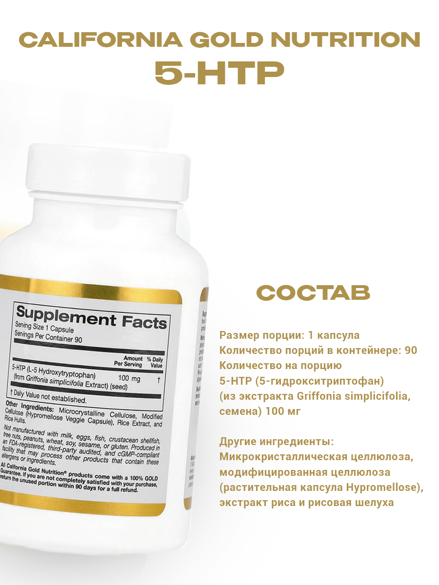California Gold Nutrition 5 гидрокситриптофан для сна и настроения, California Gold Nutrition 5 HTP, 100мг 90 капсул аминокислоты в Сухой Лог