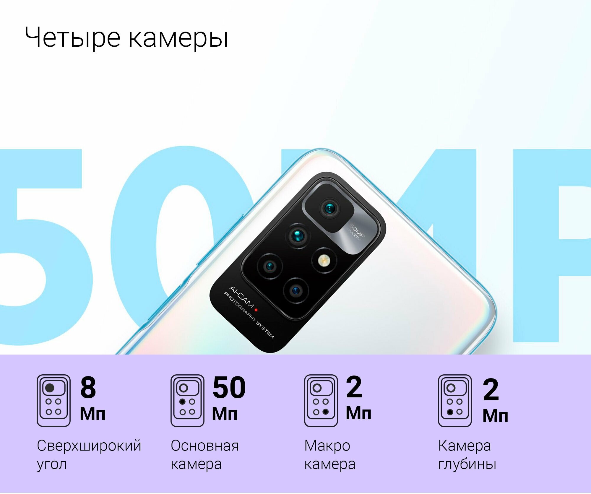Смартфон Xiaomi Redmi 10 2022 4/128 ГБ RU (EAC), Dual nano SIM, белая галька