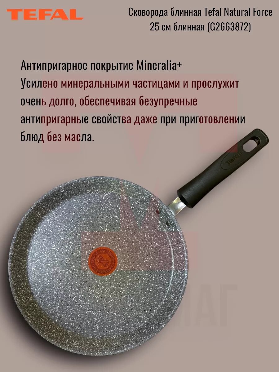 Tefal Сковорода блинная Tefal Natural Force 25 см блинная (G2663872) сковородка в Сухой Лог
