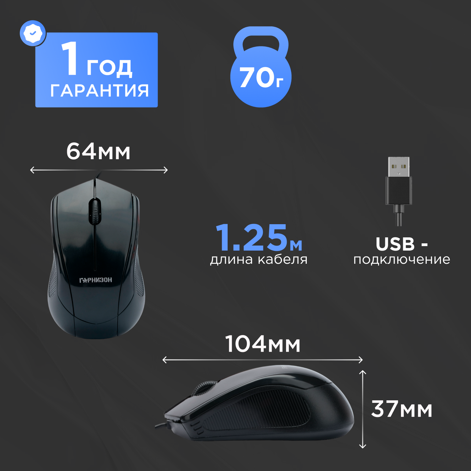 Garnizon Проводная мышь Гарнизон GM-200, USB мышка в Сухой Лог