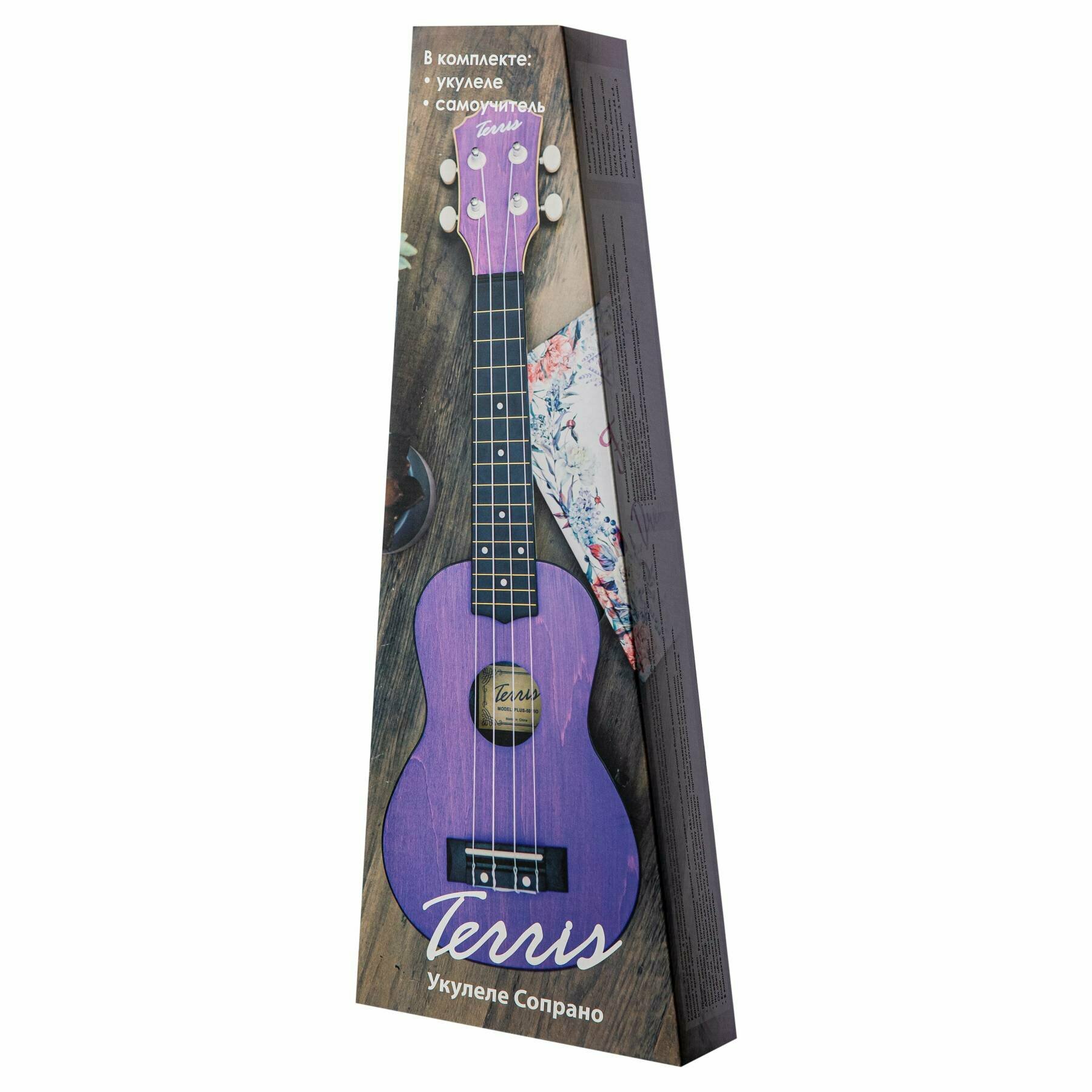 Фиолетовая укулеле сопрано с чехлом, медиатором и самоучителем Terris PLUS-50 VIO