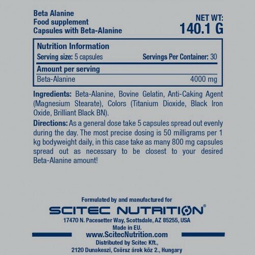 Аминоскилота Бета-Аланин Scitec Nutrition Beta Alanine капсулы, 150 шт