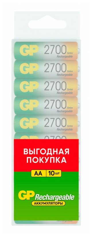 Аккумулятор GP, Rechargeable, AA, HR6-10S, 1.2В, 2700 мАч, спайка, 10 шт.