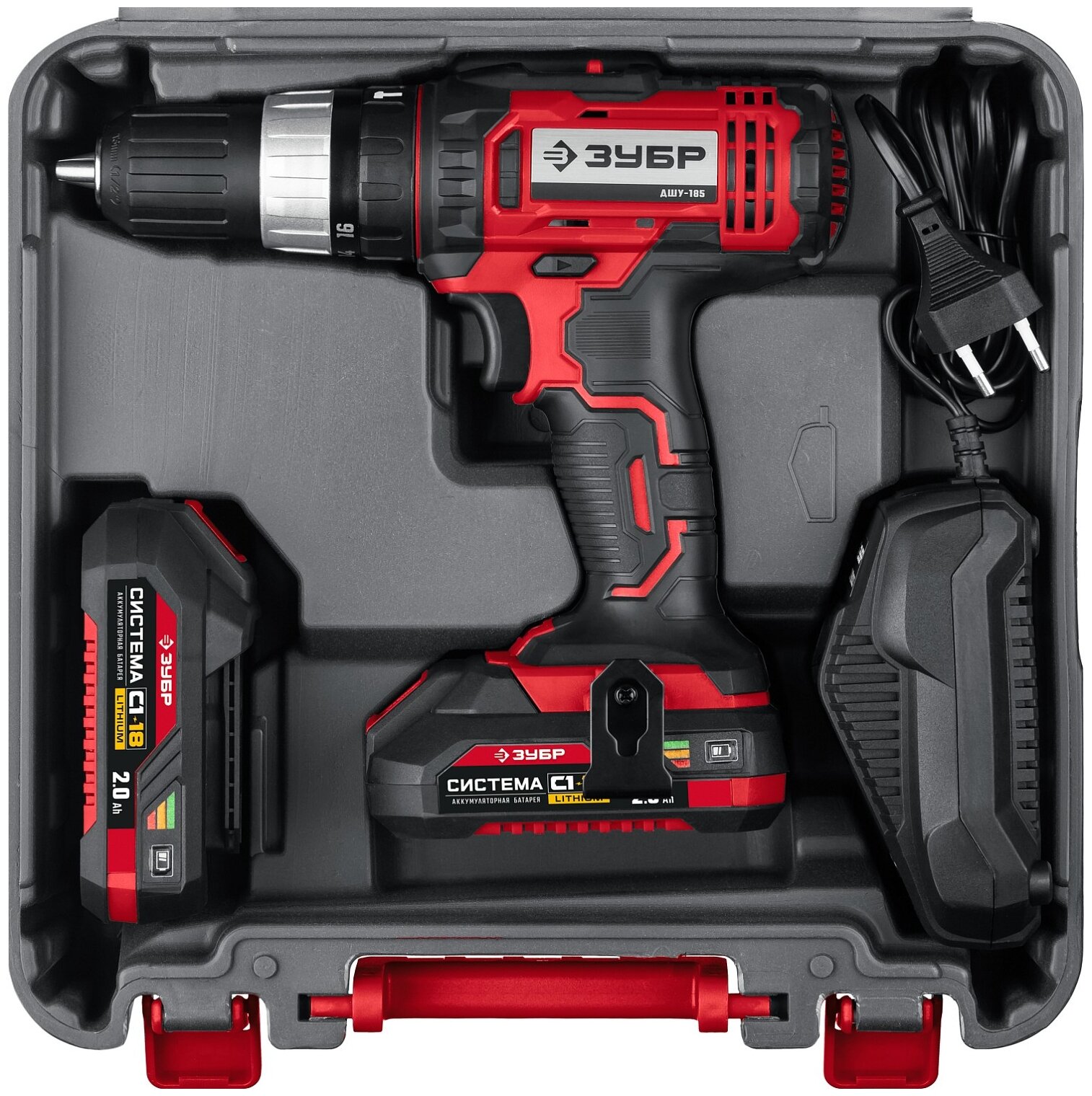 Дрель-шуруповерт ударная ЗУБР С1-18, 18 В, 40 Н·м, 2 АКБ (2 А·ч), кейс (ДШУ-185-22)