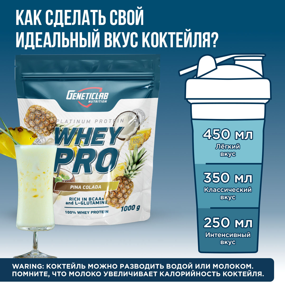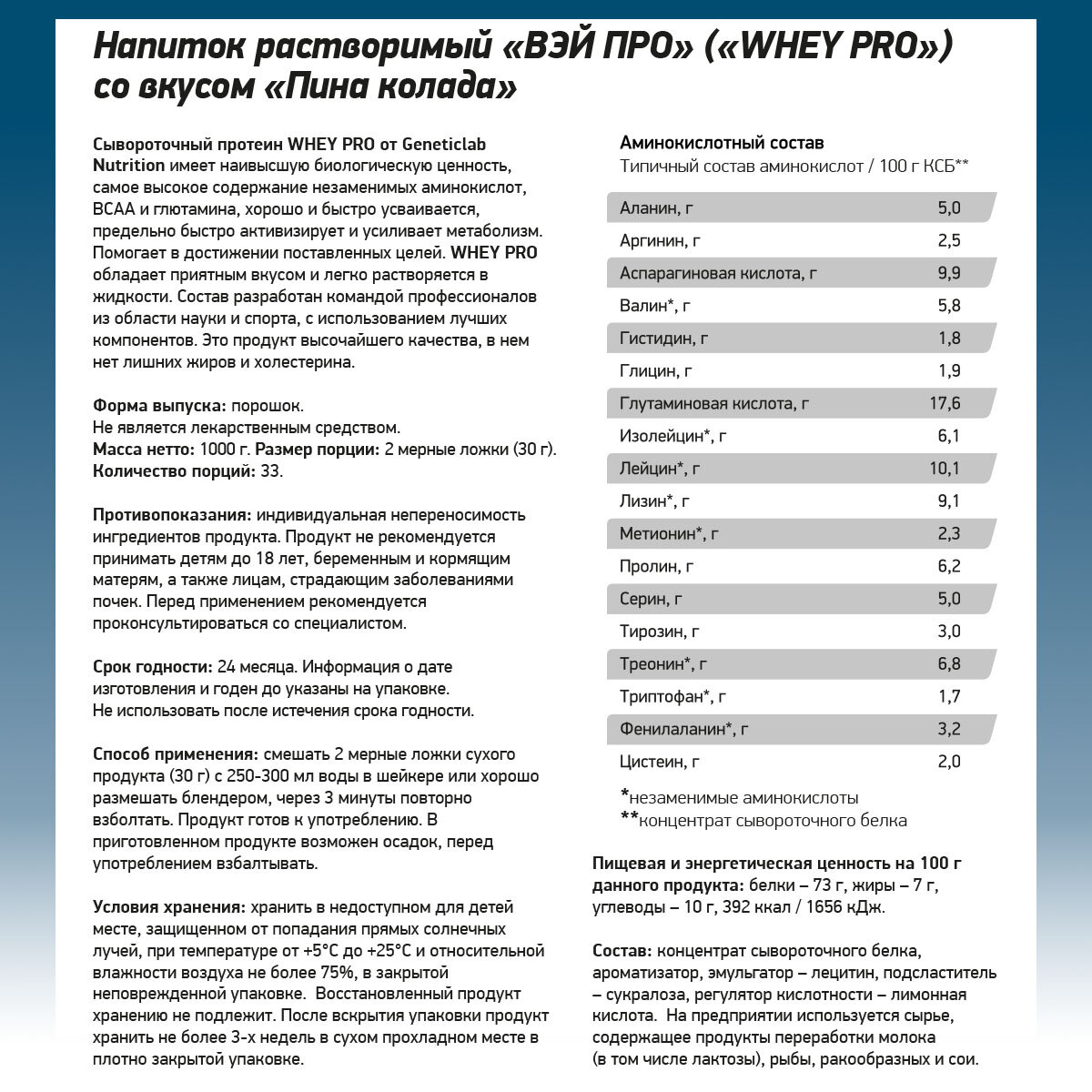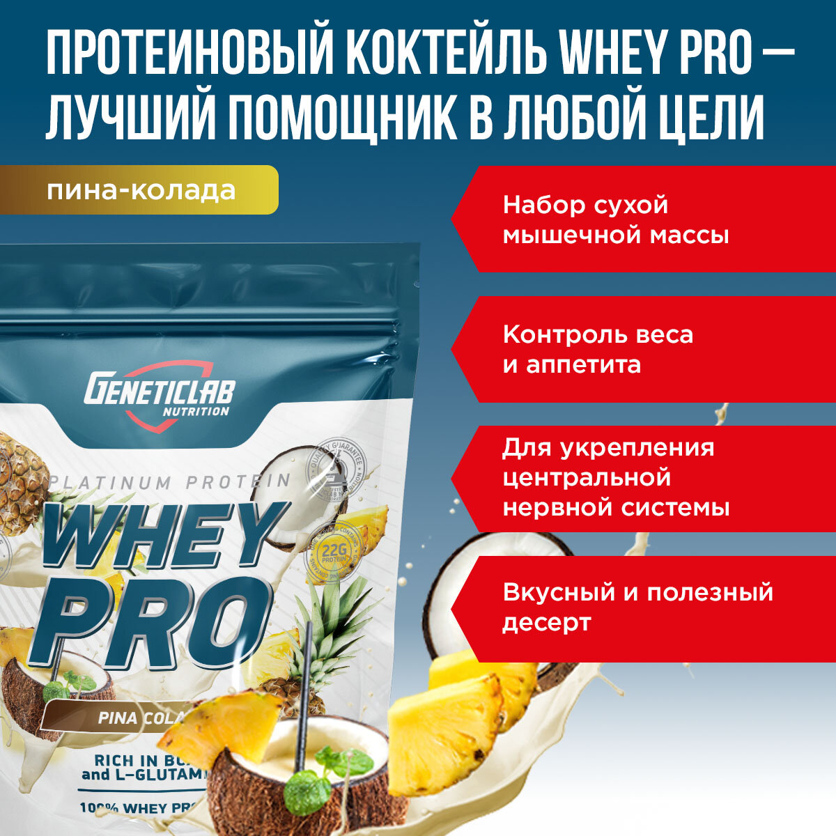 Протеин сывороточный Geneticlab Nutrition Whey Pro (1000 г) Пина колада