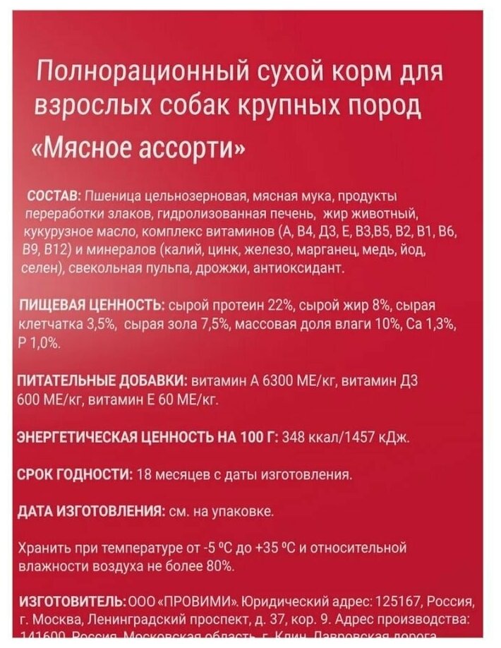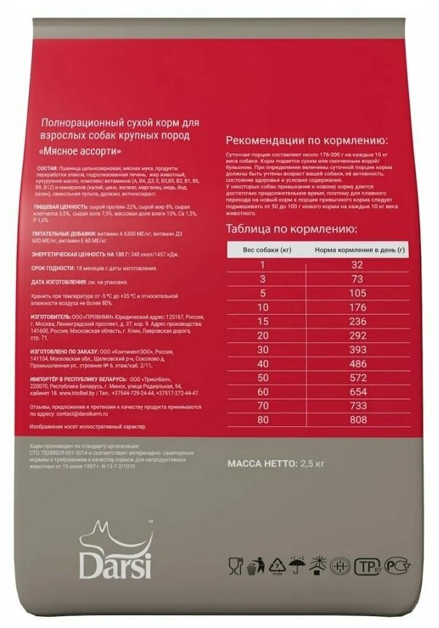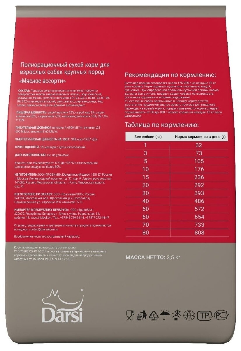 Корм Darsi для взрослых собак крупных пород Мясное ассорти, 2.5 кг
