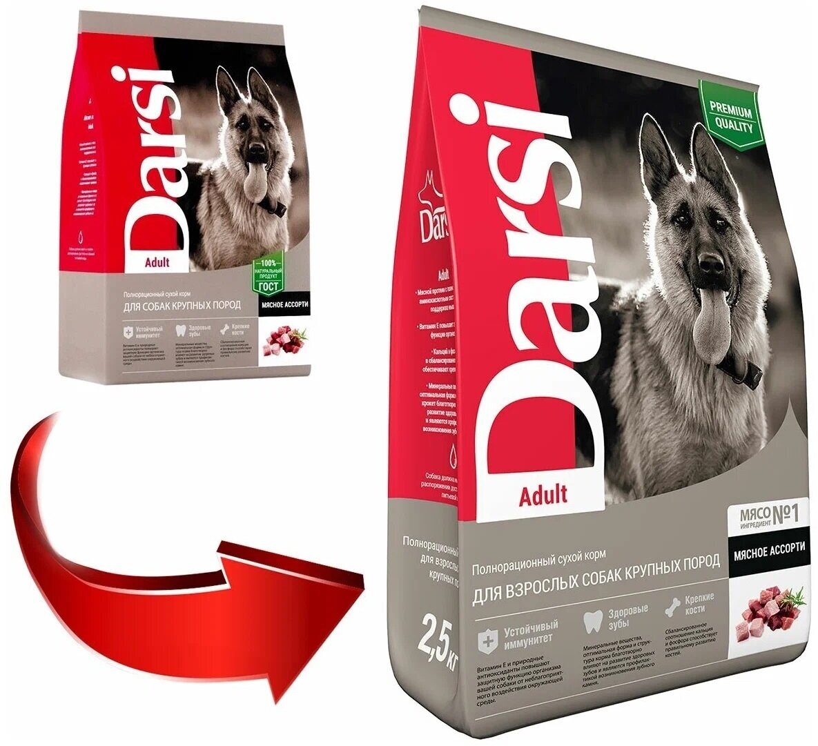 Darsi Сухой полнорационный корм для собак крупных пород Darsi Adult Мясное ассорти, 2,5 кг корм для собак в Сысерть