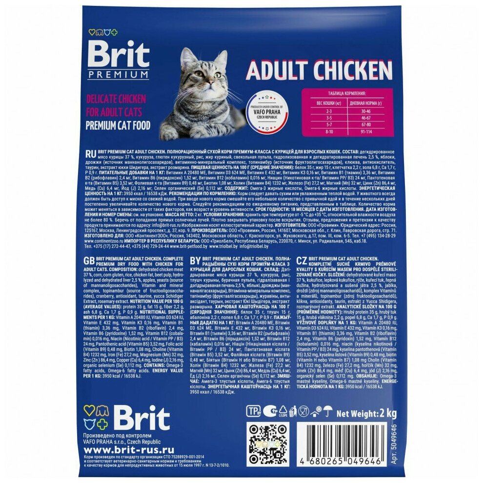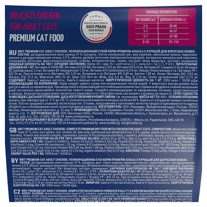 BRIT PREMIUM, Сухой корм с курицей для взрослых кошек "Cat Adult Chicken", 2кг, 5049646