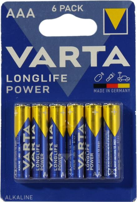 Батарейка VARTA LONGLIFE Power AAA, в упаковке: 6 шт.