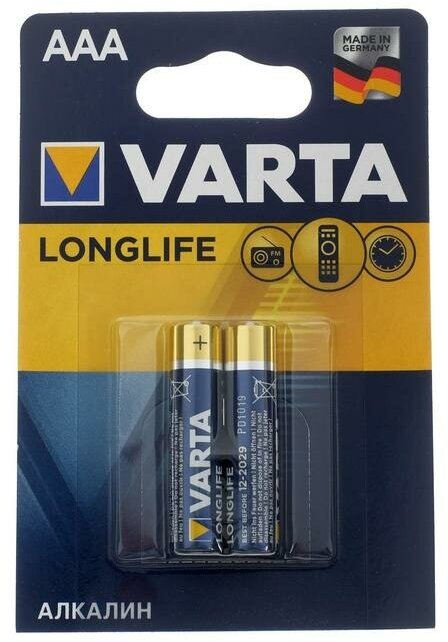 Батарейки Varta Батарейка алкалиновая Varta LongLife, AAA, LR03-2BL, 1.5В, блистер, 2 шт.