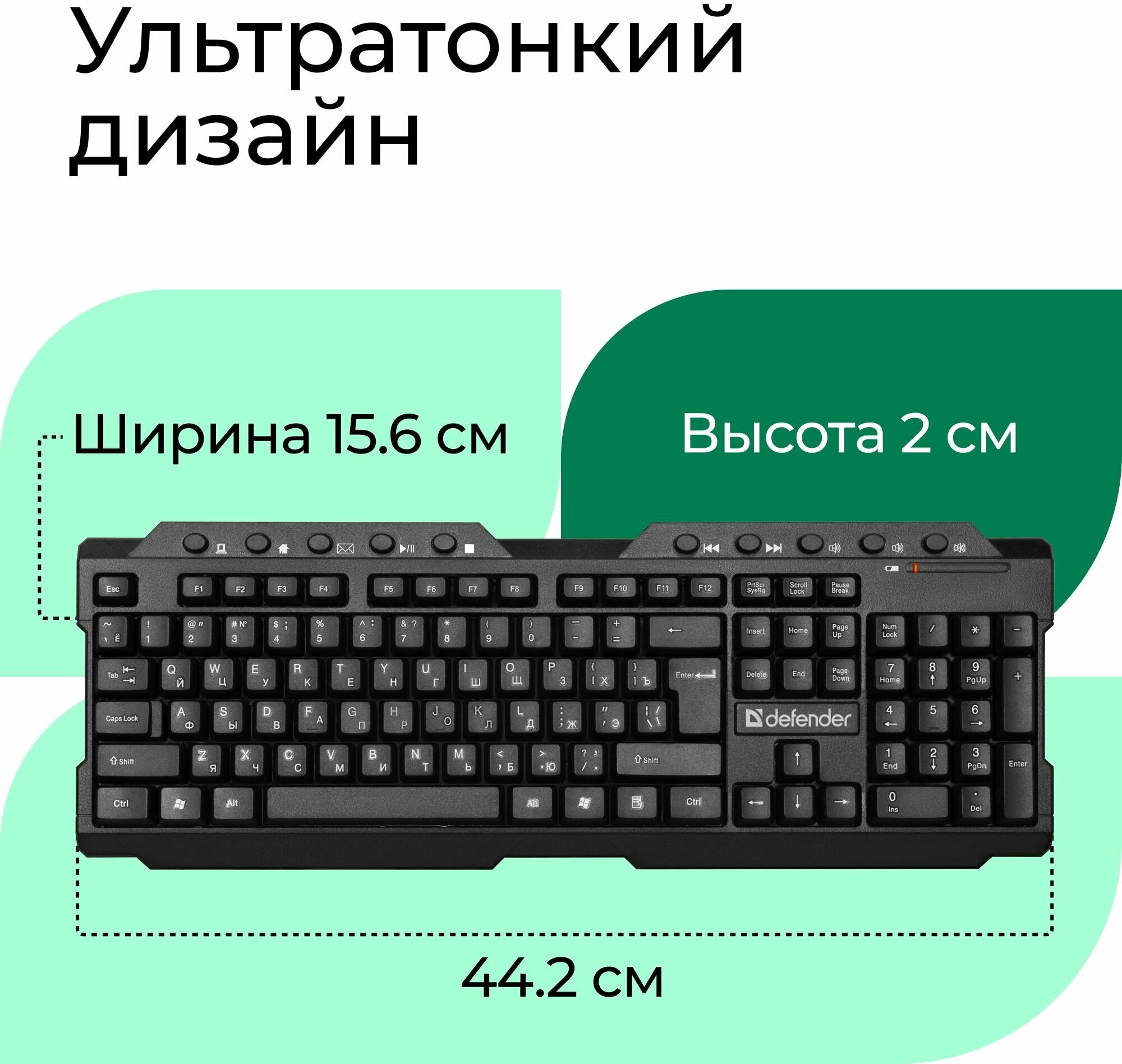 Defender Element HB-195 RU [45195] Беспроводная клавиатура черный, мультимедиа .