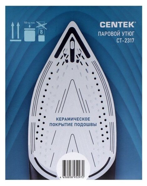 Утюг Centek Ct-2317, 2800 Вт, керамическая подошва, 300 мл, синий Centek 9519817 .