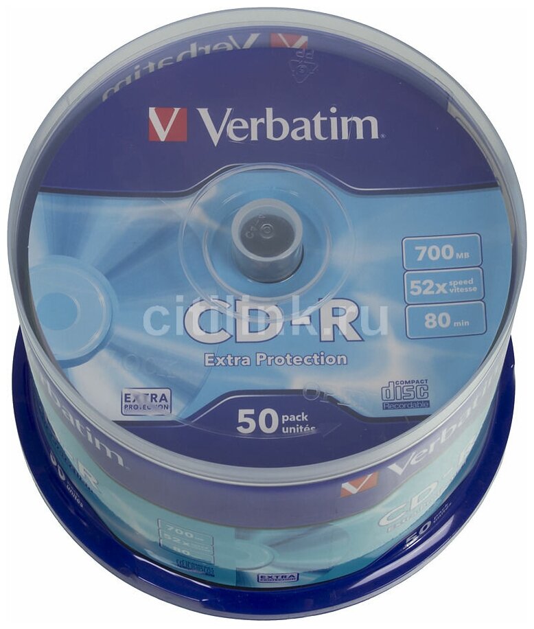 Диски Verbatim CD-R80 Cake Box (50 шт.) 700Mb 52x DL Extra Protection (43351)