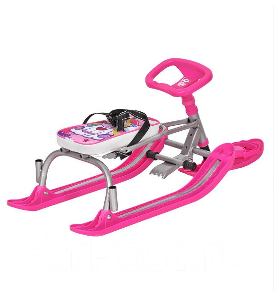 Снегокат Nika Kids TWINY 2 «Единорог», TW2-M/EP, с родительской ручкой, со спинкой и ремнём безопасности, цвет розовый, серый
