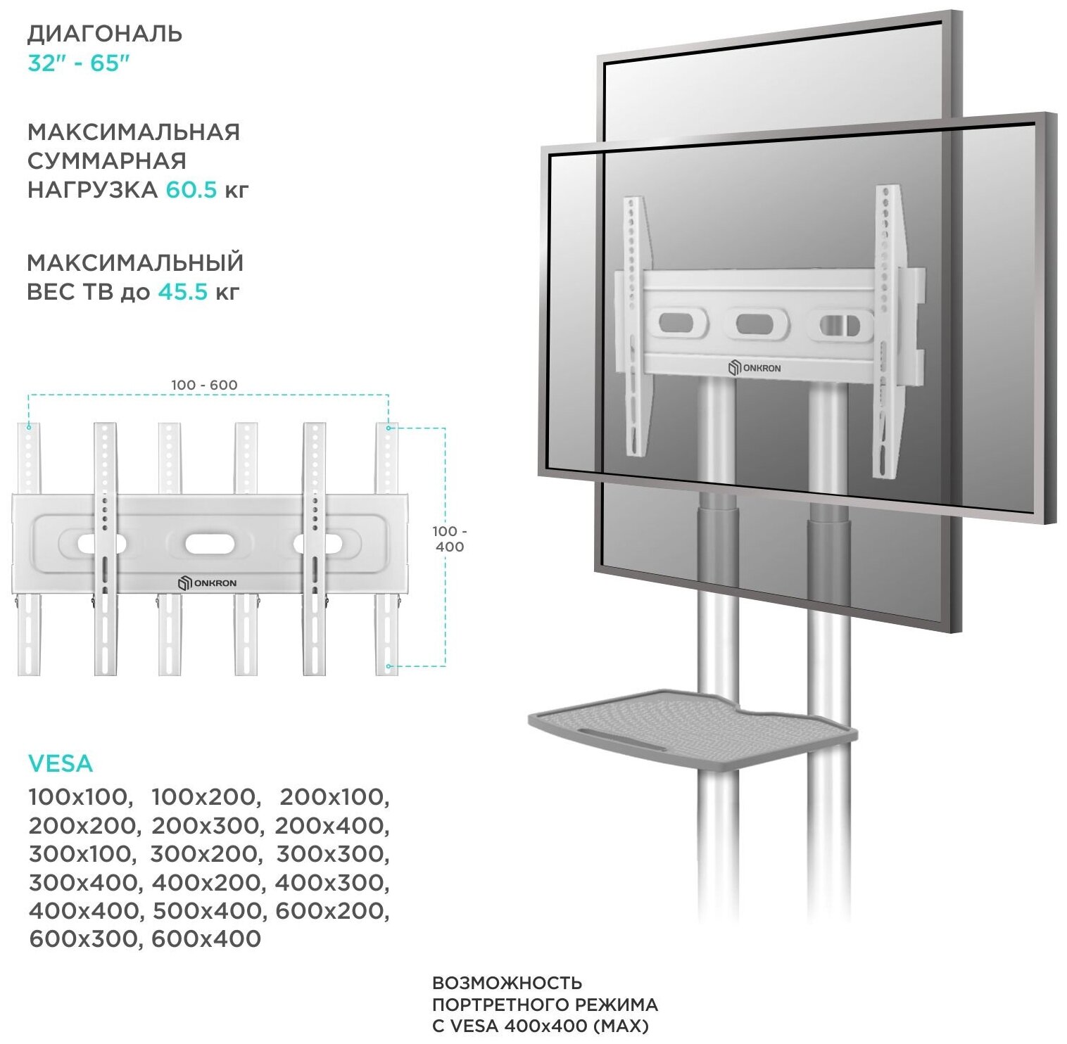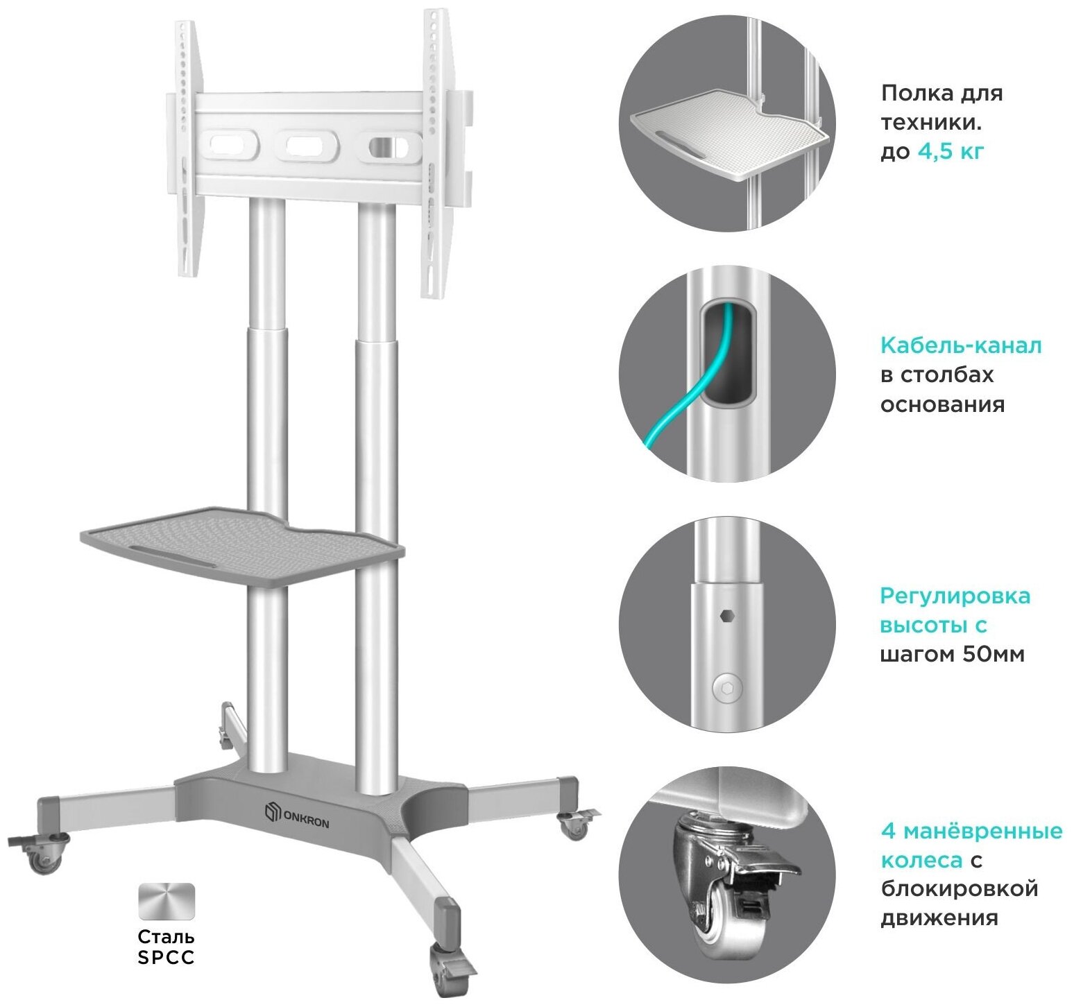 BRAVIS ONKRON Мобильные стойки TS1351 белый подставки и крепления в Сысерть