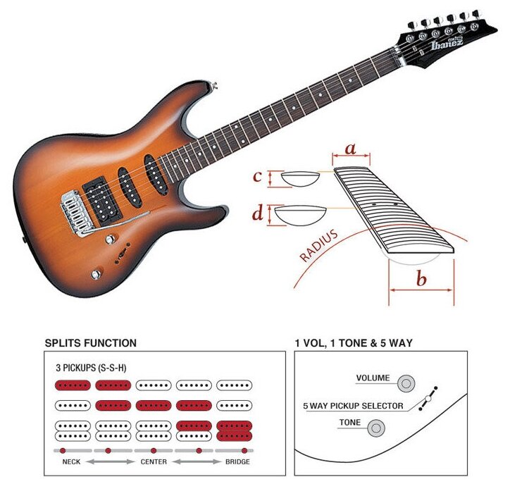Цена для г. Сысерть. Серия GSA потрясающе доступная комбинация удобства, плоской формы корпуса с изогнутой верхней декой, SAT тремоло и конфигурации звукоснимателей S/S/Н с 5-позиционным переключателем для невероятного тонального разнообразия. Характеристики: Тип: электрогитара, 22 лада Материал корпуса: агатис Гриф: клен Накладка грифа: палисандр Бридж: SAT10 Звукосниматели: S/S/H (PSND2/PSND-S/PSND-S). Магазины в городе Сысерть смотрите ниже