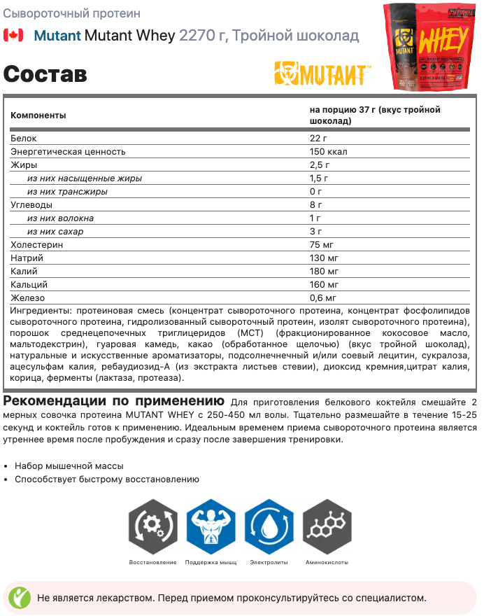 Протеин сывороточный для набора мышечной массы Whey Mutant