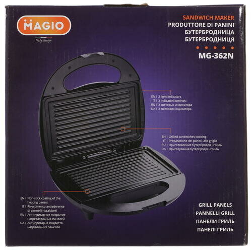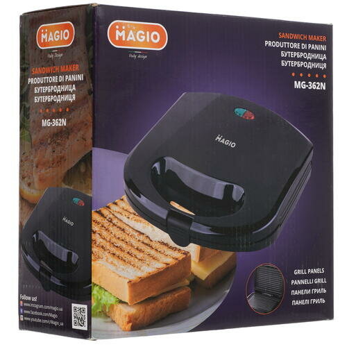 Magio Сендвичница-гриль MAGIO МG-362N, черный тостеры, бутербродницы и вафельницы в Сысерть