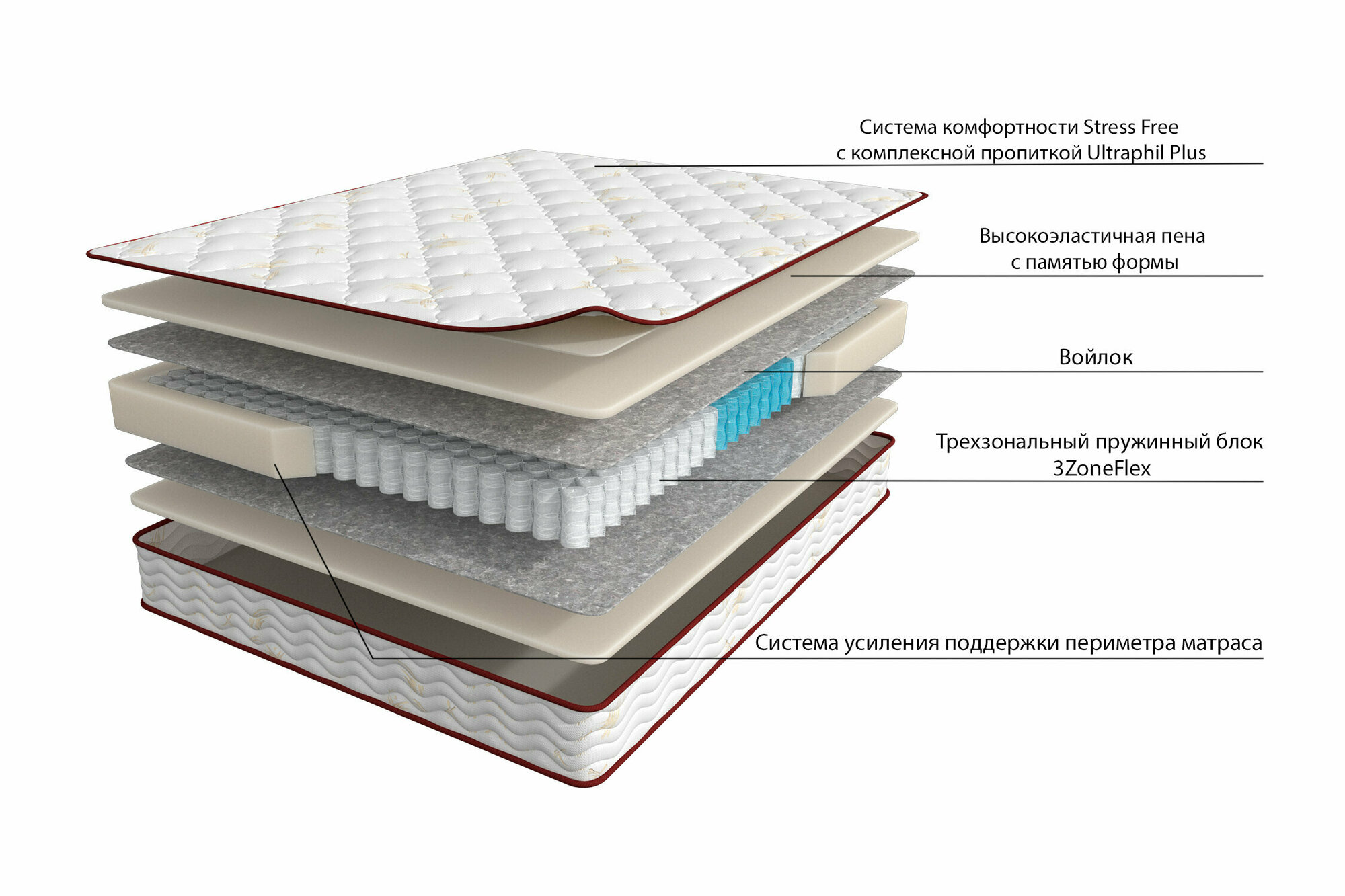 Анатомический матрас, Ортопедический матрас SOUL Fines, Зональный блок 90x190 см