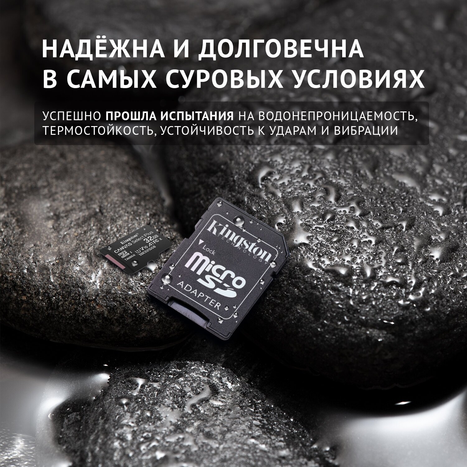 Карта памяти Kingston microSDXC 256 ГБ Class 10, V30, A1, UHS-I U3, R/W 100/85 МБ/с, адаптер на SD, 1 шт., чёрный