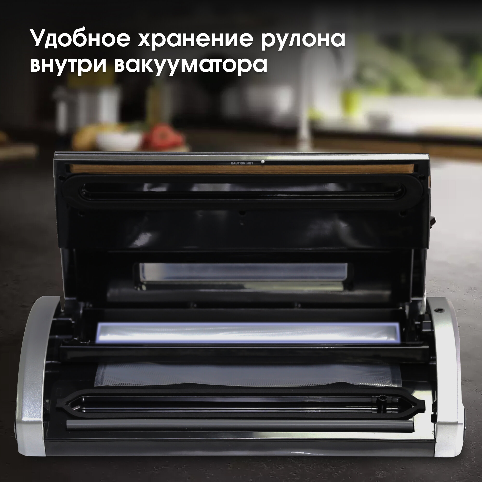 - вакуумирование контейнеров / для влагосодержащих продуктов / регулировка вакуумирования / контейнер для рулона / встроенный нож для пленки