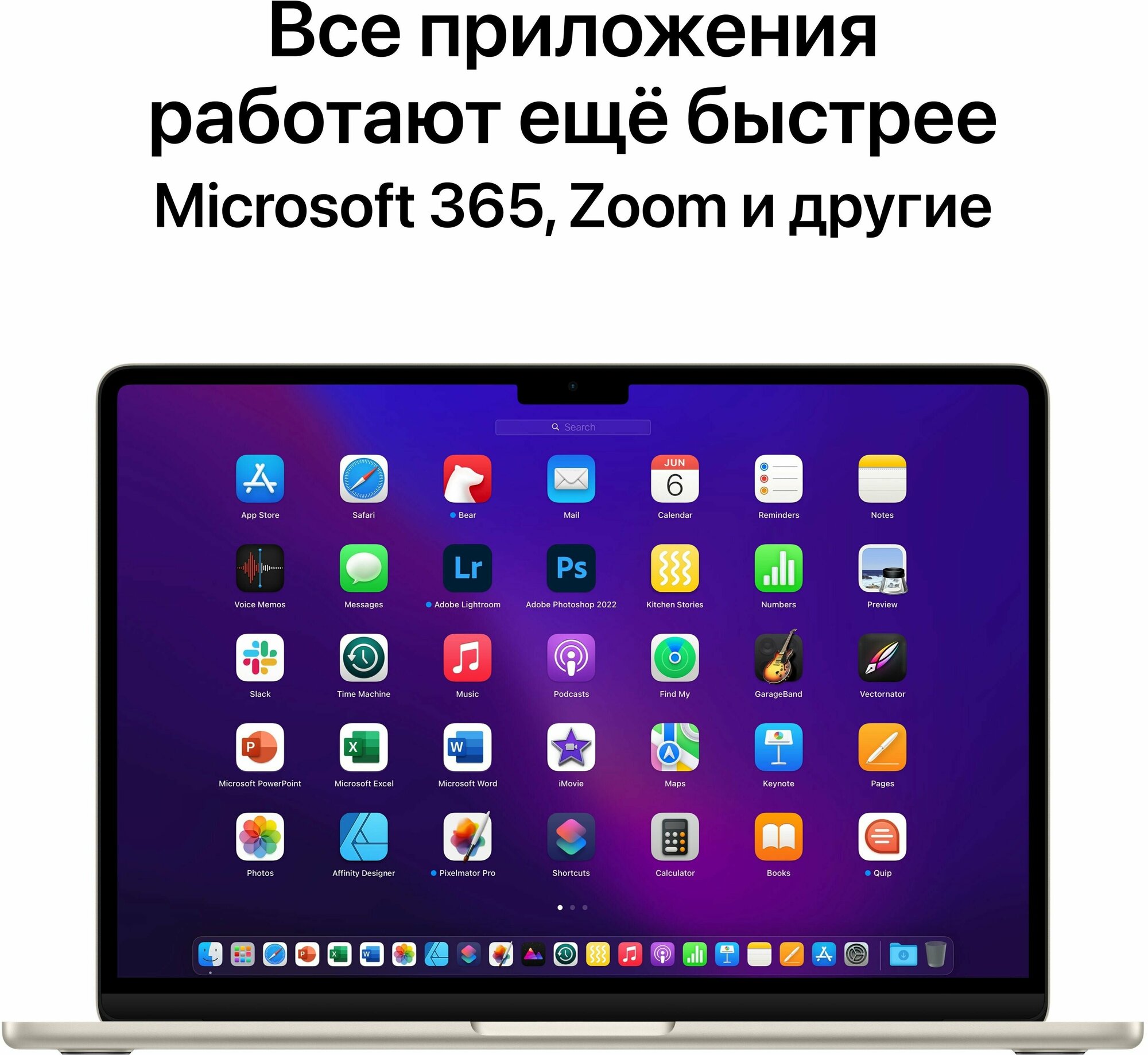Ноутбук Apple MacBook Air 13 2022 (2560x1600,13.6 , Apple M2, RAM 8 ГБ, SSD 256 ГБ, Apple graphics 8-core), Starlight (MLY13RU/A)
