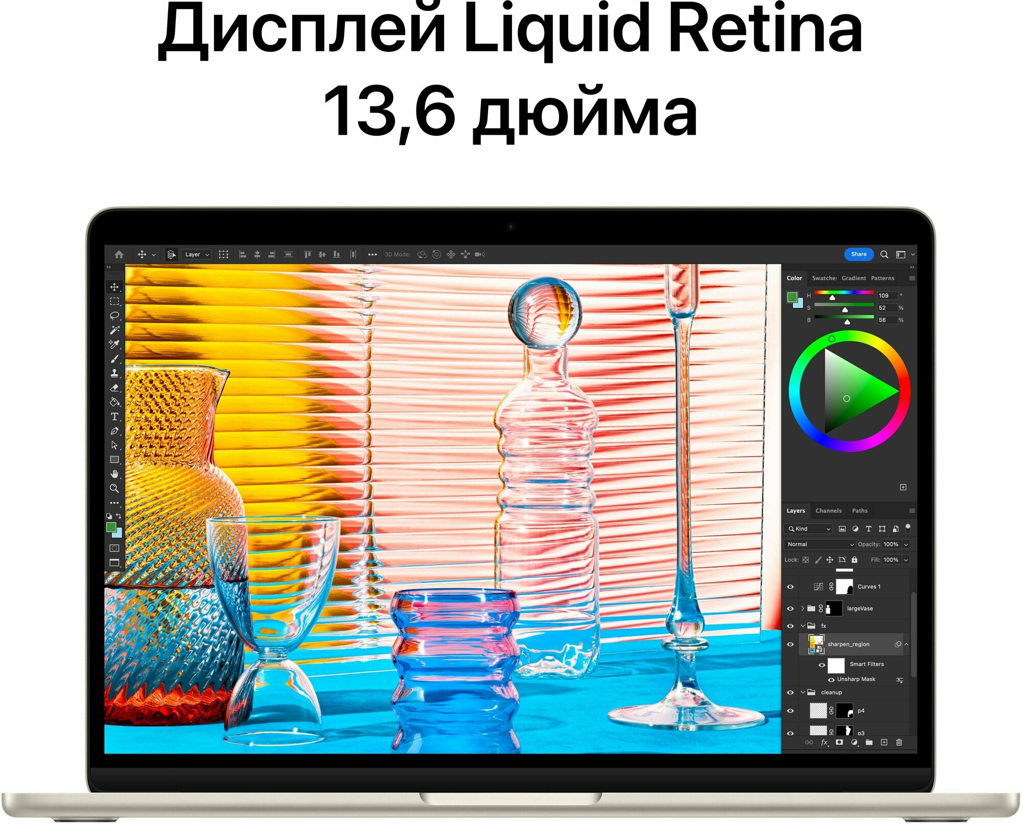 Ноутбук Apple MacBook Air 13" (M2, 8C CPU/10C GPU, 2022), 8 ГБ, 512 ГБ SSD, сияющая звезда