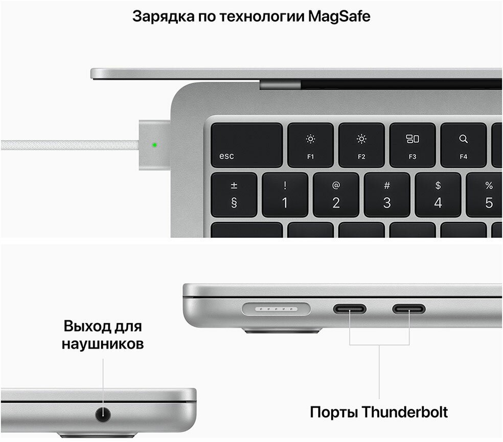 Ноутбук Apple MacBook Air 13 (2022) Silver MLXY3 (Apple M2/13.6"/2560x1664/8GB/256GB SSD/Apple graphics 8-core/Wi-Fi/macOS)