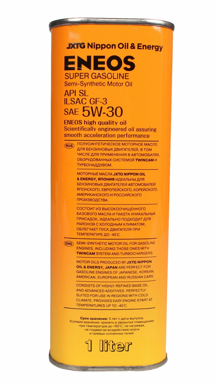 Масло моторное Eneos Super Gasoline 5w30 полусинтетическое, SL/GF-3, для бензинового двигателя, 1л, арт. 1358